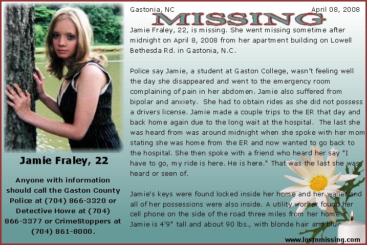 Jamie Fraley MISSING Unsolved from Gastonia NC since April 08, 2008