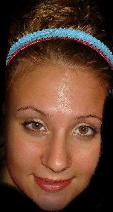 Piercings/Tattoos: ears pierced also belly button pierced.T attoo on left shoulder blade of a half moon/stars w faint lettering